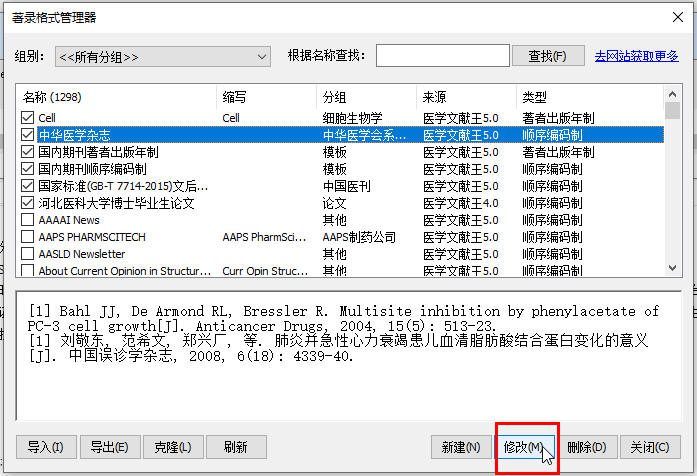 打开后,选择需要修改的著录格式,然后点“修改”