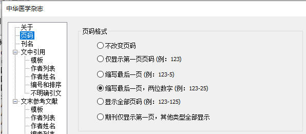 用于控制参考文献列表里面页码显示的样式,可以根据杂志投稿要求进行设置。