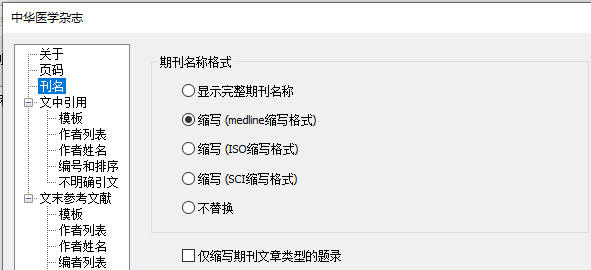 用于控制参考文献列表中期刊名称的显示格式,按稿约要求选择即可。